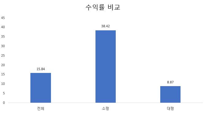 항상 그래 왔던 것처럼 소형주에서 가장 높은 수익률을 기록했고 대형주에서 가장 낮은 수익률을 기록하였다. 두 대상의 수익률 차이는 29.55% p나 됐다.